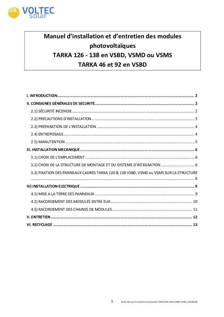 Manuel d’installation et d’entretien TARKA 126 VSMD 385-395W ONYX