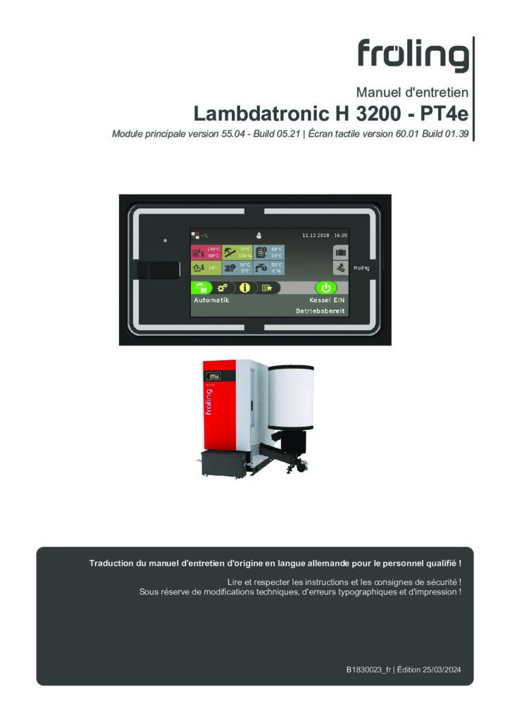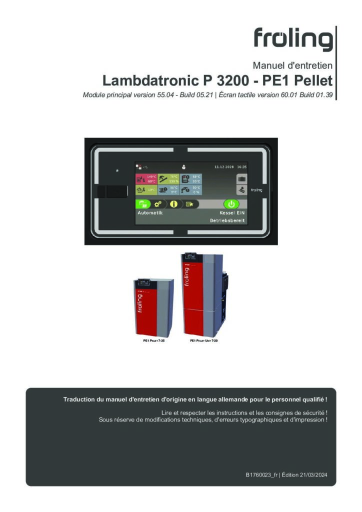 Manuel d’entretien Lambdatronic P 3200 – PE1 Pellet